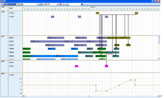 高级排程可高效直观地反映车间情况,我们的MES高级排程应用可视化图形技术,建立便捷、人性化的互动界面。用户在屏幕上就可以清楚地看到用户各订单的实际运作情况。手工调整各个参数后,系统又可很快在屏幕上显示出相应的排程方案,包括生产设备,生产开始时间、要求生产完成时间、生产数量等,供计划制定人员进行权衡、决策。用户可以手动移动图中的任何一个事件,从而达到调整计划开始时间和结束时间的目的。